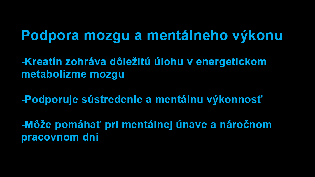 Väčšina to rieši kávou alebo energetickými nápojmi, ktoré pomôžu len na chvíľu. Kreatín funguje inak. Pomáha dodávať energiu priamo mozgu, vďaka čomu podporuje lepšie sústredenie, jasnejšie myslenie a mentálnu výdrž počas dňa. Bez výkyvov, bez náhlych poklesov energie. Jednoduchý a prirodzený spôsob, ako podporiť výkon mysle